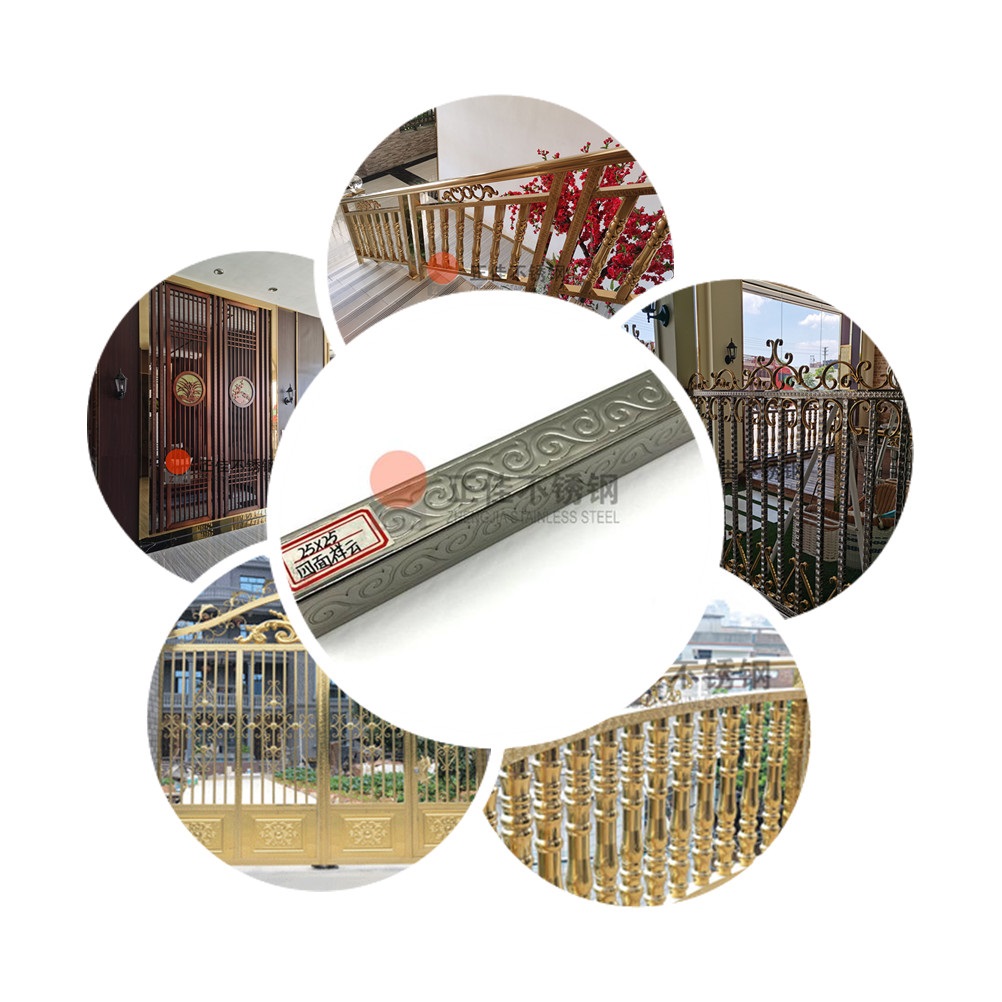 本款產(chǎn)品是一種新型的藝術(shù)不銹鋼,在不銹鋼管的表面壓出漂亮復(fù)雜的花紋,可定制各種個(gè)性花紋。廣泛應(yīng)用于各種建筑裝飾!